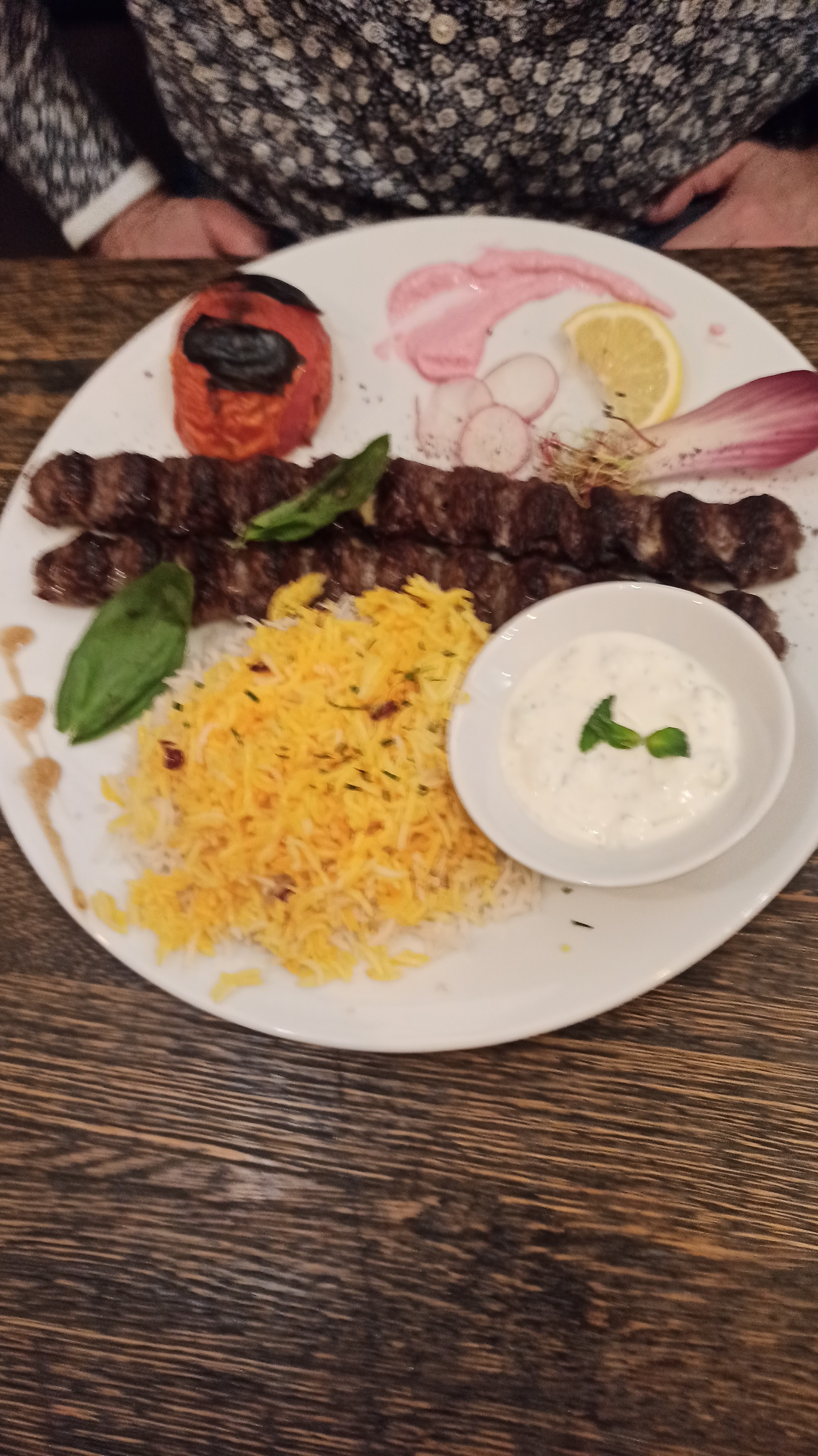 Posté le 12/12/2023 à 22:33"En fin un bon resto iranien sur Lyon. La variété est bonne, accueil chaleureux et plats savoureux. J’ai mangé Tchenje et Koobideh et je les ai bien aimé. Pour le dessert: Roulette à la crème et thé iranien. Je recommande vivement."