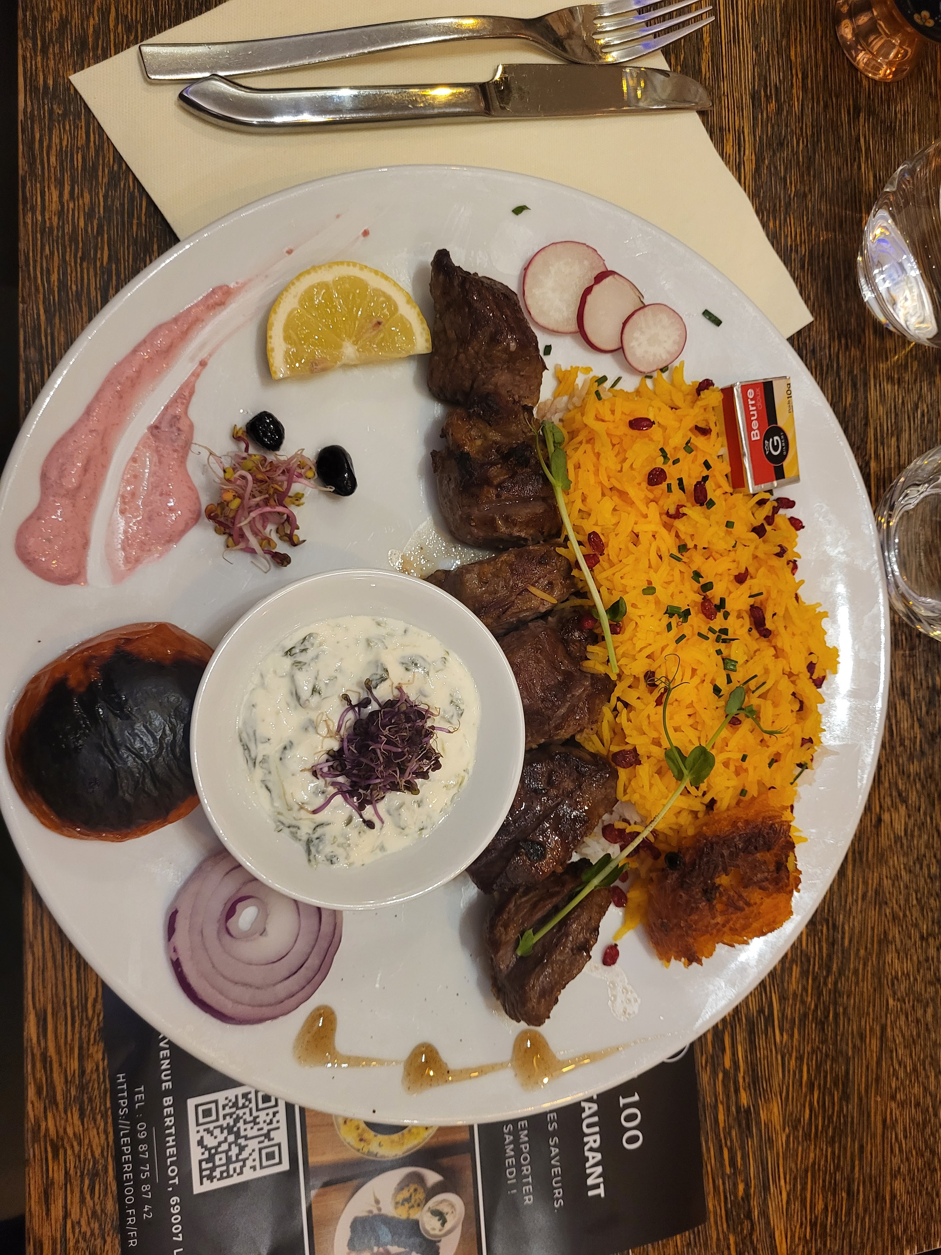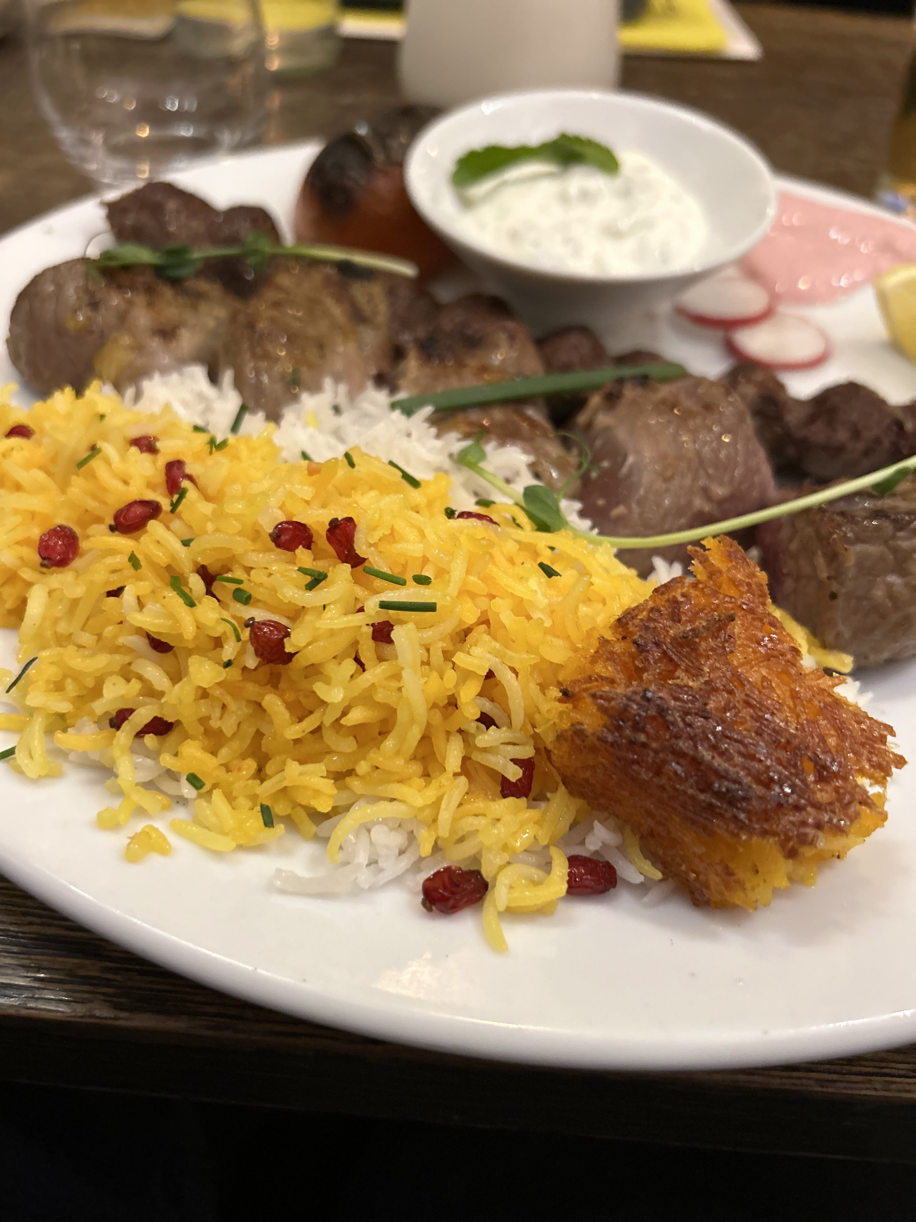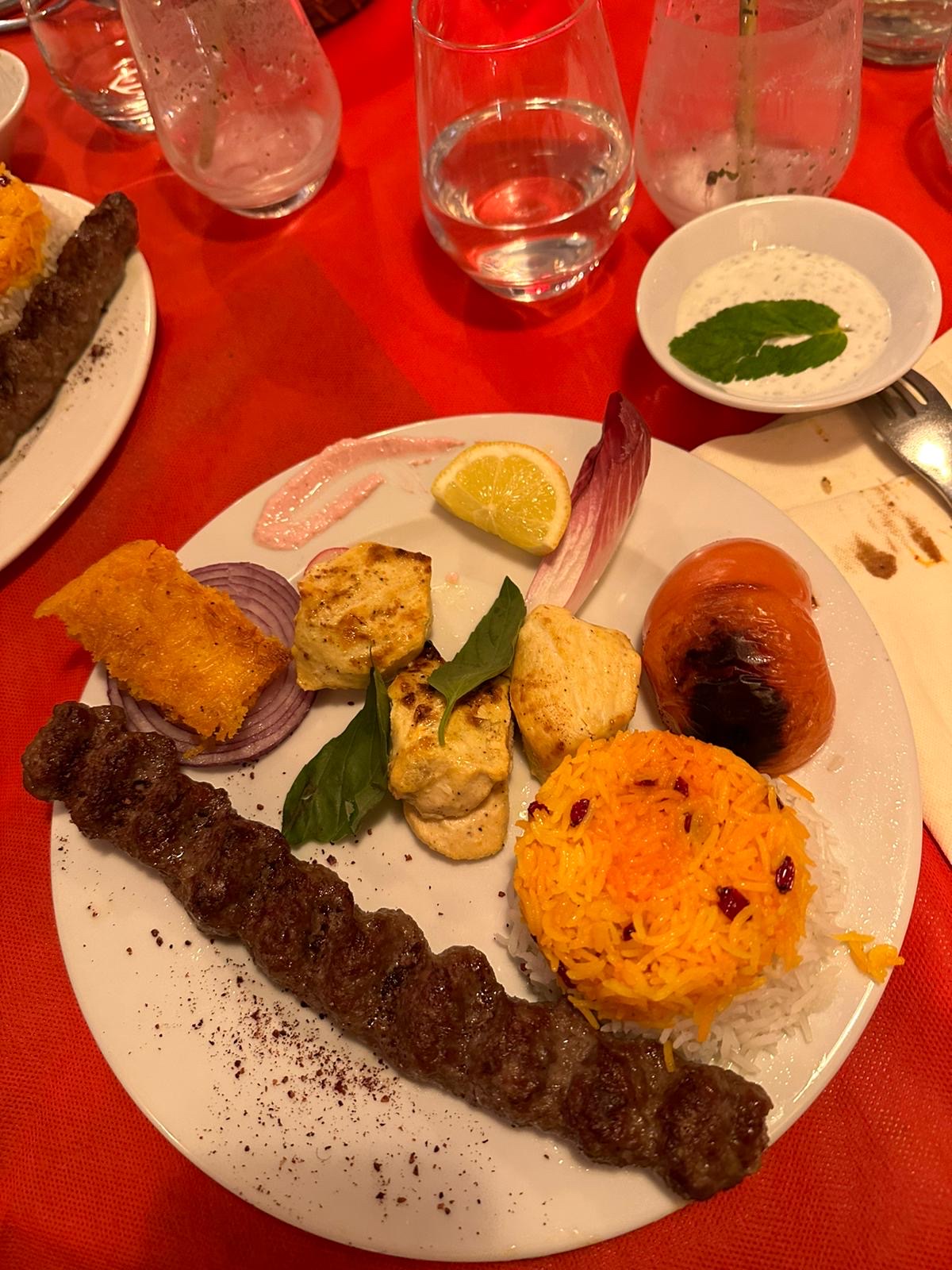 Un vrai plaisir de se retrouver comme à Téhéran, de déguster des mezze et des brochettes de poulet, avec l’incontournable et très réussi riz au safran ! Plats copieux, au point qu’on a pas pu prendre de dessert… bon excuse pour y retourner et échanger quelques mots de farsi. Il manquait un restaurant iranien dans ce quartier bien actif, c’est fait. Allez-y, vous ne le regretterez pas