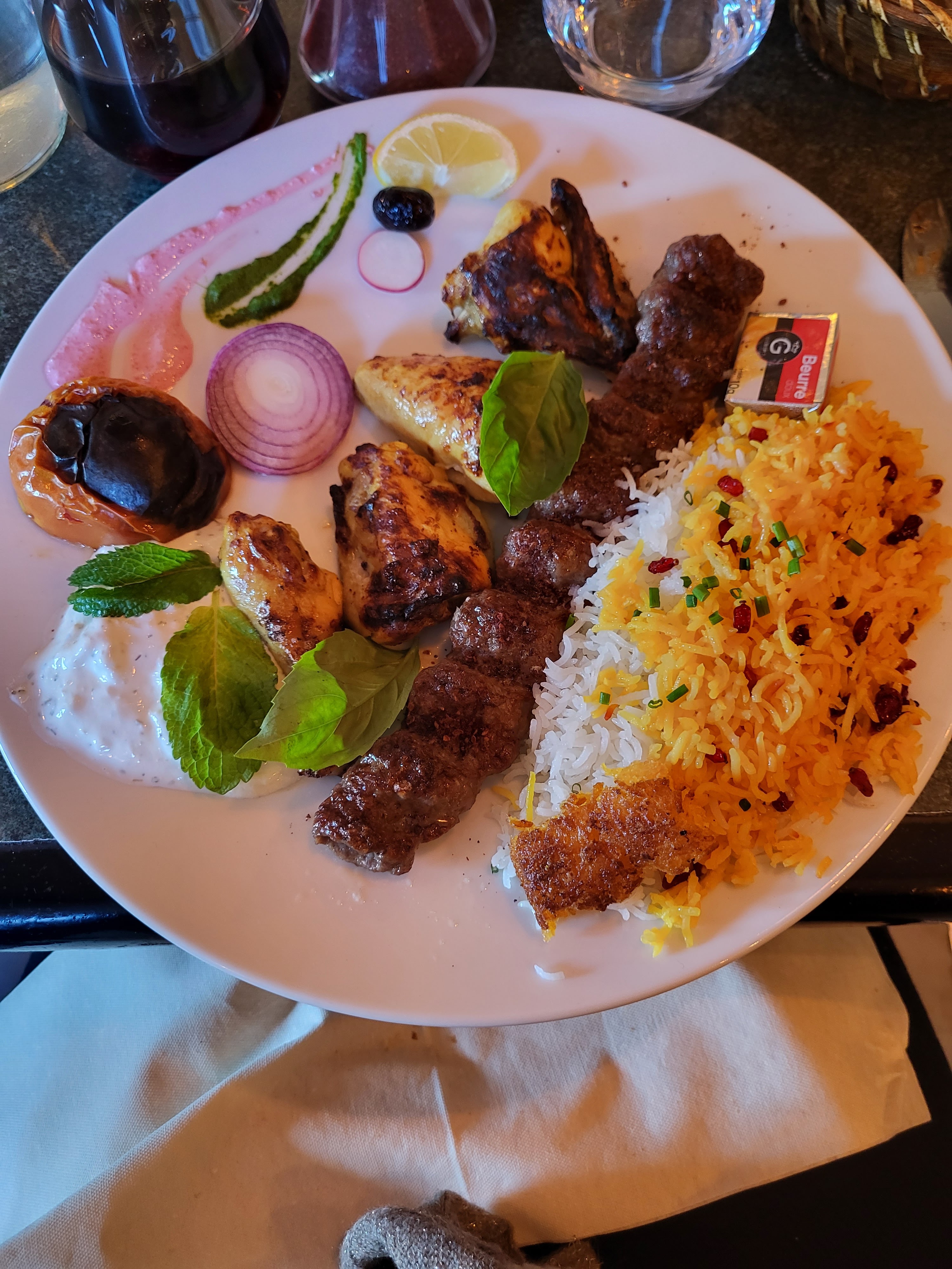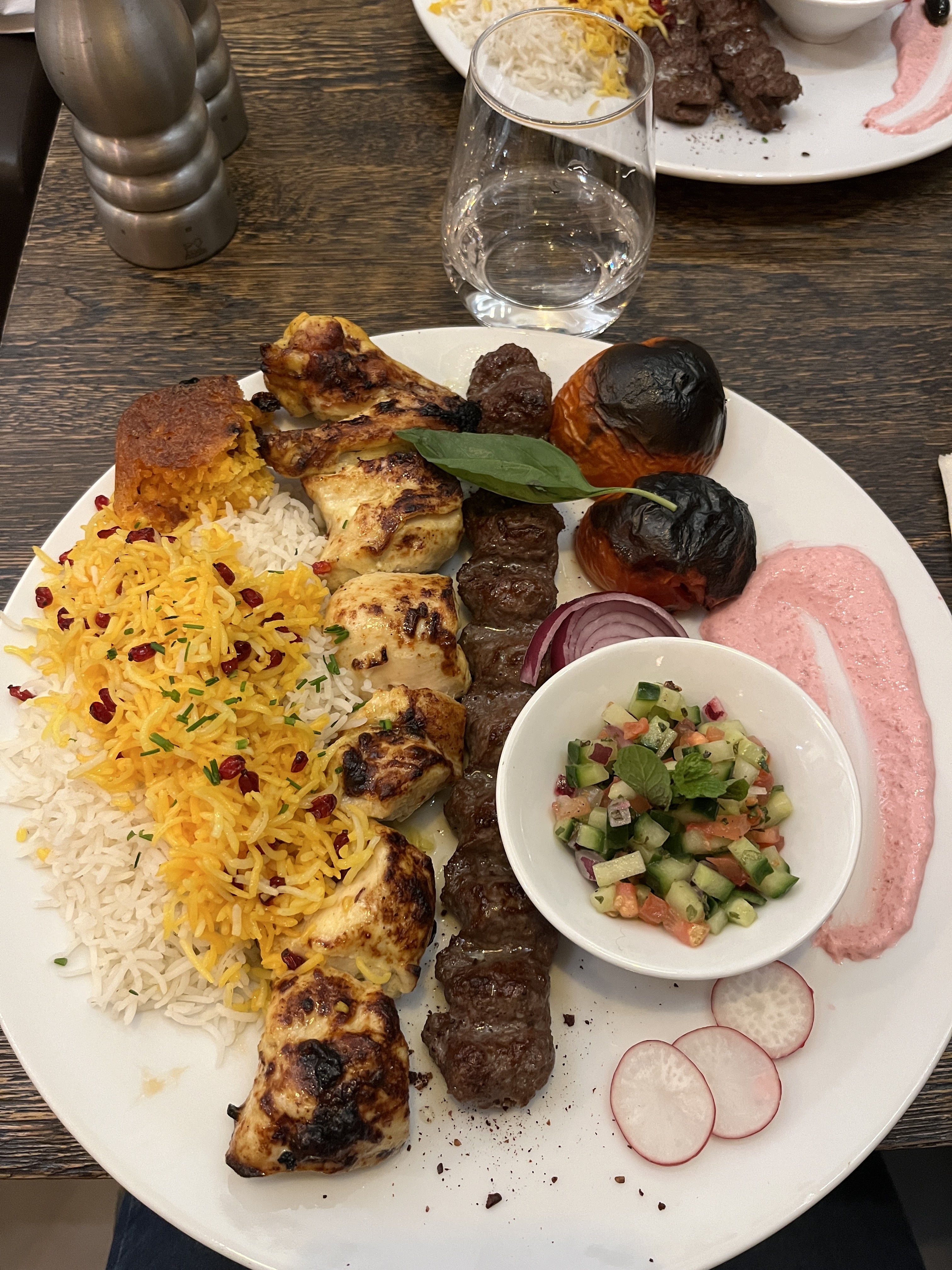 Posté le 07/12/2023 à 19:34"Un vrai plaisir de se retrouver comme à Téhéran, de déguster des mezze et des brochettes de poulet, avec l’incontournable et très réussi riz au safran ! Plats copieux, au point qu’on a pas pu prendre de dessert… bon excuse pour y retourner et échanger quelques mots de farsi. Il manquait un restaurant iranien dans ce quartier bien actif, c’est fait. Allez-y, vous ne le regretterez pas"